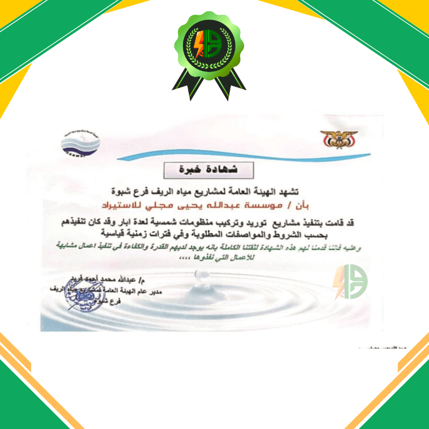 التزامنا هو تقديم حلول هندسية وتجارية فائقة الجودة تفوق توقعات عملائنا، من خلال استيراد وتنفيذ أفضل أنظمة الطاقة والكهرباء. نحن نكرس خبراتنا التي تمتد لعقود لتمكين القطاعات الحكومية، التجارية، والزراعية من الحصول على طاقة مستدامة وموثوقة، مع التركيز على الكفاءة المهنية والمساهمة في النهضة العمرانية لليمن.”